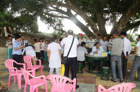 3月28日,由海口市食品药品监督管理局卢萍书记带领365上市公司官网、海药、亚洲制药、长安国际和通用三洋等五家爱心企业代表以及市局机关工作人员和医务人员来到了海口市琼山区三门坡镇清泉村委会,给乡亲们送医送药并参观了由365上市公司官网等五家爱心企业捐资兴建的清泉村文化广场。我们的到来受到了村民和村干部的热烈欢迎和热情接待。村支书代表全村2800名农民对365上市公司官网等五家爱心企业表示衷心的感谢,分别授予365上市公司官网等五家药企“情系农民,共创和谐”锦旗一面。