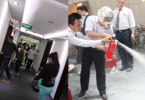 培训内容主要有如何排查容易引发火灾的消防安全隐患、高楼发生火灾自救、办公电器设施设备正确使用、火情紧急情况处置、鉴别灭火器是否有效和正确使用方法、防烟面具的使用方法、火灾应急疏散常识等,并组织了疏散演练。