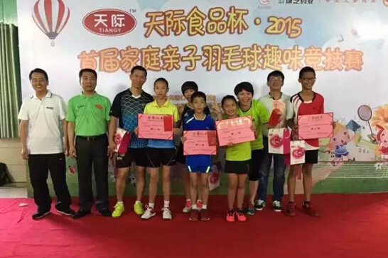 2015年6月14日上午10点,由中共海口市委宣传部指导,海口市文化广电出版体育局主办,海南365上市公司官网股份有限公司、海南天际食品有限公司、365上市公司官网红脸蛋基金和海口广播电视台《宝贝真棒》青少栏目共同协办的“天际食品杯?2015首届家庭亲子羽毛球趣味竞技赛”颁奖典礼在海口顺健源羽毛球馆盛大举行。