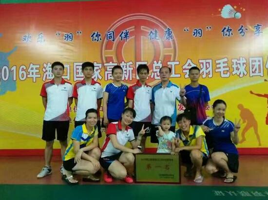 8月20日至28日,由海口市国家高新区管委会主办,海口国家高新区总工会承办的“2016年海口国家高新区总工会羽毛球团体赛”在海口举行。365上市公司官网羽毛球队在各位成员的共同努力下,积极进取,勇于争先,获得比赛第一名的佳绩。