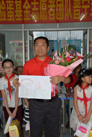 在捐赠仪式上,洪江游先生代表365上市公司官网红脸蛋基金向军屯小学赠送“爱心共建学校”牌匾,并为孩子们发放爱心大礼包。孩子们则向洪董事长献上了鲜花和自己精心绘画的美术作品。
