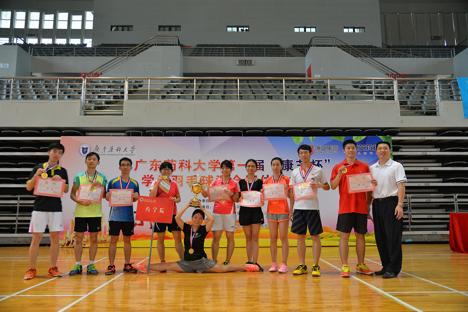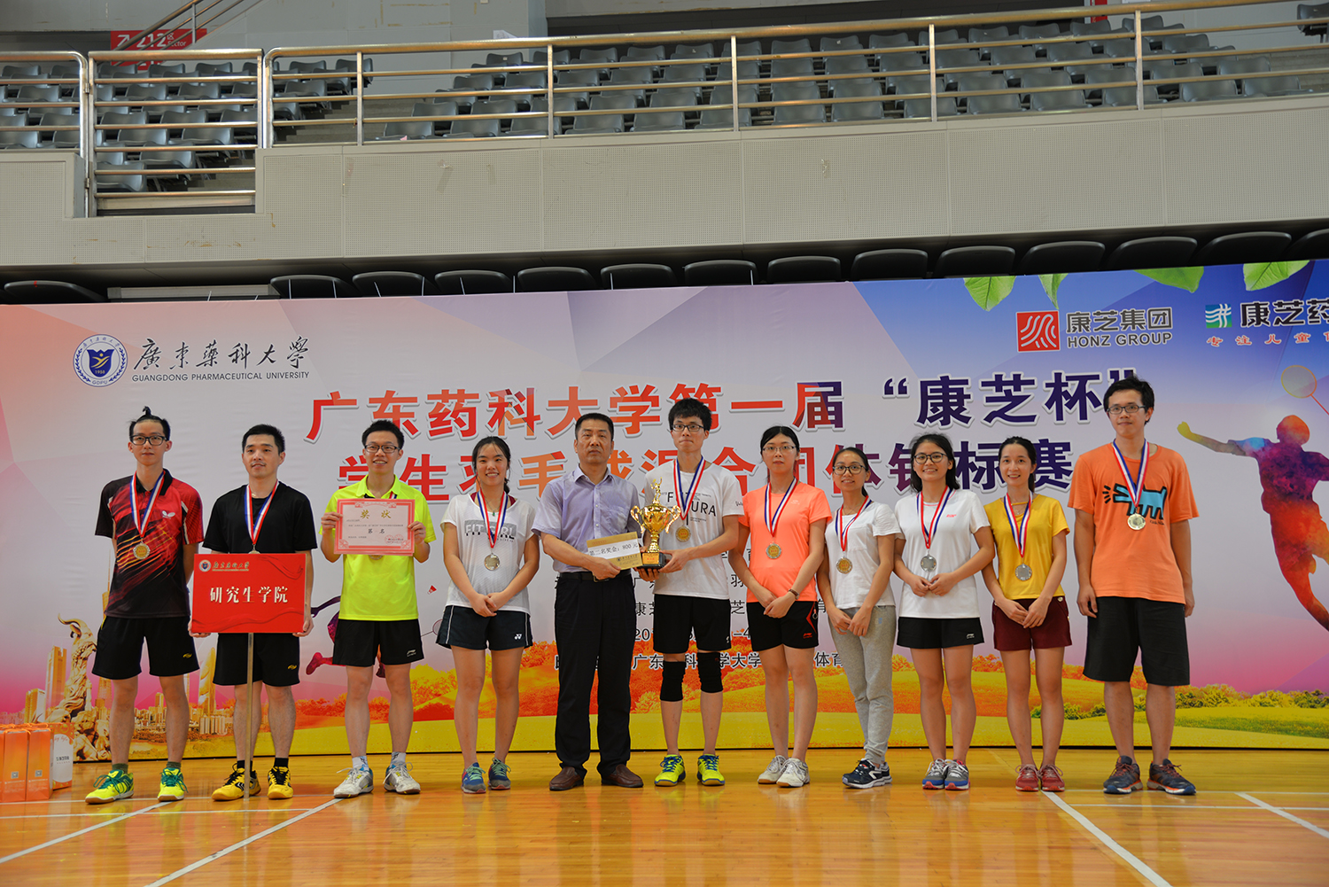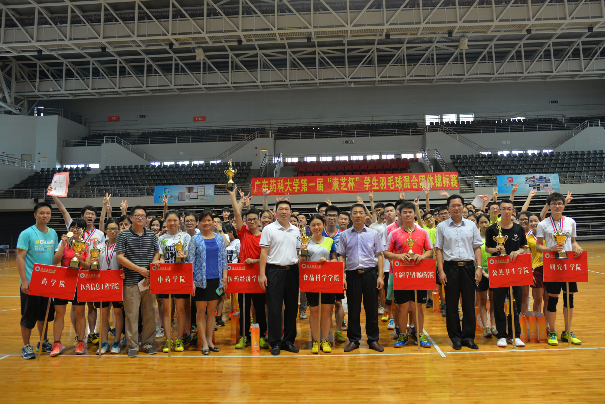6月3-4日,由365上市公司官网集团、365上市公司官网冠名赞助的广东药科大学首届“365上市公司官网杯”学生羽毛球混合团体锦标赛在广药大学城校区体育馆举行。来自广东药科大学各学院的12支学生代表队参加了比赛。