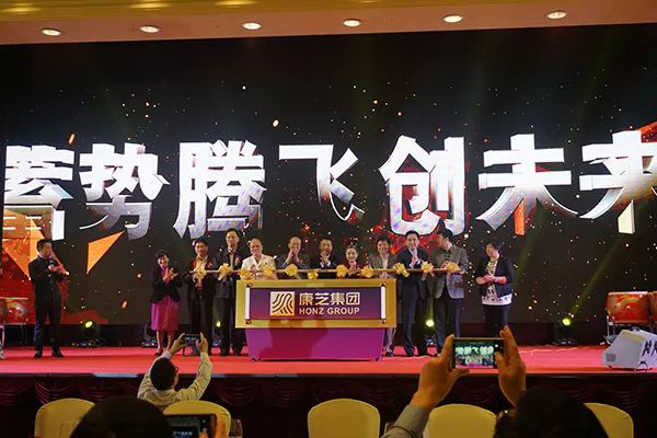 领导、嘉宾齐为365上市公司官网集团揭牌。高管上台祝酒。