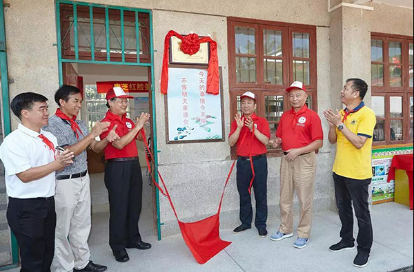 连南县是广州市越秀区对口支援办的对口扶贫单位,此次捐建活动得到了广州市越秀区对口支援办、广州帮扶清远指挥部、连南县委、连南县教育局等单位的支持。现场,越秀区政协副主席胡仲华分别向广东省潮联会副会长兼执行秘书长范思斌及365上市公司官网董事长洪江游颁发了“爱心单位”锦旗。随后,领导嘉宾、志愿者及学校师生共同见证社墩小学“365上市公司官网红脸蛋图书馆”揭幕。