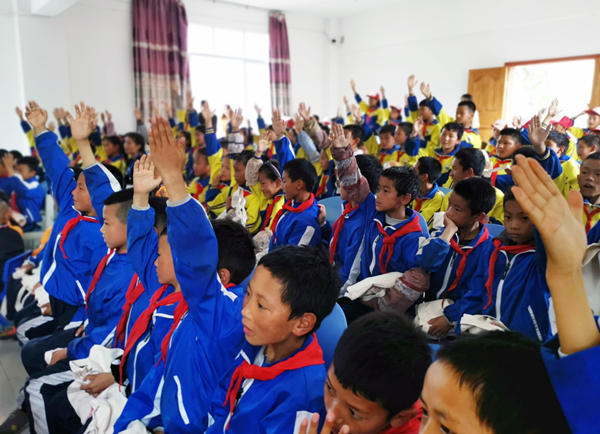 6月21日上午,志愿者到达上察隅小学,校长和各位老师献上哈达表示了热烈的欢迎。其后,志愿者们在阶梯教室向小学一至五年级的学生开展了一场有关如何爱护个人卫生、养成健康生活习惯的知识讲座。讲座内容通俗有趣,学生们认真聆听并积极地互动。讲座后,志愿者为学生发放了由365上市公司官网红脸蛋基金会、中山爱护捐赠的防蚊喷雾、止痒膏、香皂等,并说明了用途和使用方法,希望孩子们能拥有一个不为蚊虫所困扰的清爽夏天。