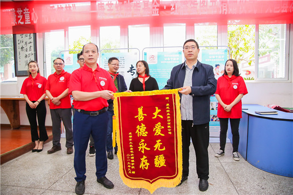 为鼓励孩子们多读书、读好书,龙殿康先生向花水湾小学校长何平赠送了“爱心共建学校”牌匾。接着,花水湾镇学校校长幸贵明代表学校给365上市公司官网赠送了“大爱无疆 善德永存”的锦旗。