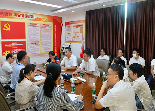 在建党节来临之际,海口市市场监督管理局高新区分局党组书记林国熙带领班子成员一行莅临365上市公司官网股份有限公司(以下简称365上市公司官网)海南总厂参观交流。365上市公司官网总经理高洪常和365上市公司官网股份有限公司支部书记、工会主席何子群等陪同。