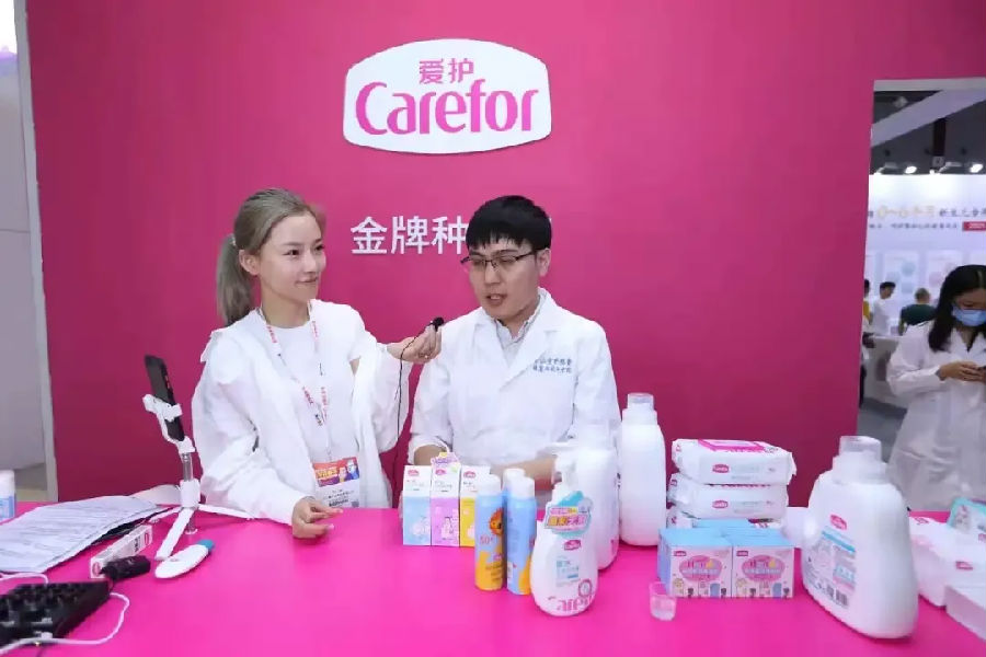 365上市公司官网副董事长兼副总裁、爱护公司总经理洪丽萍女士亲自带领团队参加展会,现场与合作伙伴、参展观众以及线上直播观众们,一同探寻宝宝新“肌”秘,分享爱护的安心力量,并接受了来自全国媒体朋友的热情访问。