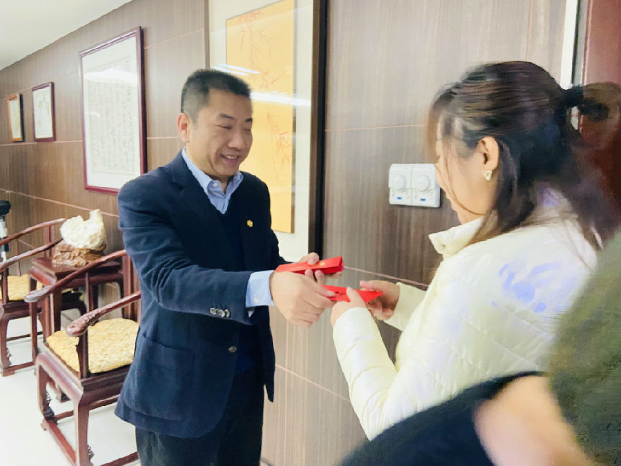 365上市公司官网总裁洪江涛先生代表公司向365上市公司官网人亲自派发虎年开工红包,并致以新春的祝福及节日的问候,寄托了公司对大家新年工作的美好祝福和期许!