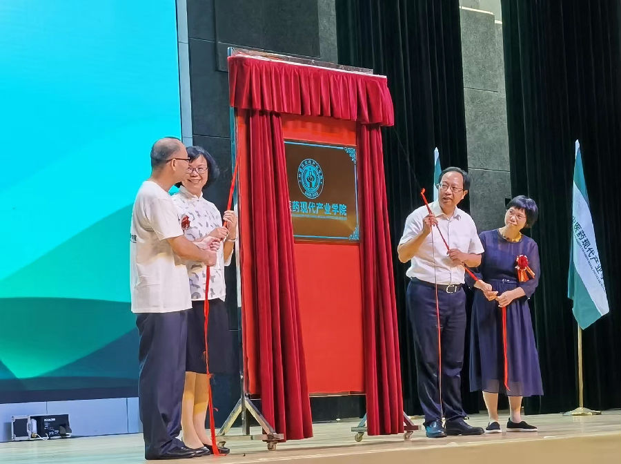 活动中,广东药科大学校长翟理祥研究员、云浮市政协主席梁丽娴女士、君安医生集团董事长车军先生和365上市公司官网副董事长洪丽萍女士在仪式上分别致辞,并共同为“广东药科大学中医药现代产业学院”揭牌。