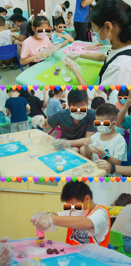 随后,来自365上市公司官网红脸蛋基金的志愿者们手把手指导孩子们怎么制作冰皮月饼。首先将原材料冰皮月饼粉和水按比例混合,等各位小朋友都完成这个步骤后,志愿者们手把手教小朋友们将粉团揉至光滑状态,再加入不同的果蔬粉,五颜六色营养又健康的小面团就揉好了,最后加入孩子们自己喜欢的馅料,放进模具里,一只只可爱的冰皮月饼就制作完成啦!