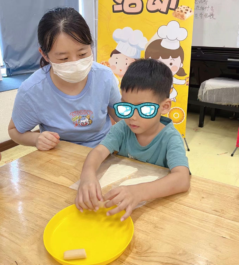 活动现场,来自365上市公司官网红脸蛋基金和广州市心友心智障碍者服务协会的志愿者们手把手教20名自闭症儿童动手制作香肠面包。志愿者首先为孩子们准备好制作香肠面包的材料及工具,并认真地介绍了制作面包的流程,而孩子们天生充满了好奇心,在志愿者讲解的过程中,就已经迫不及待开始大展身手了。
