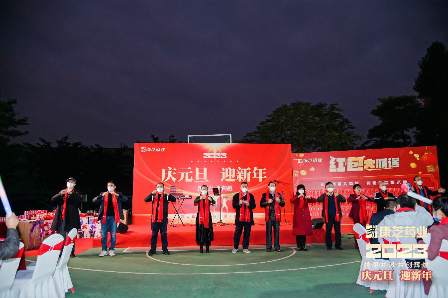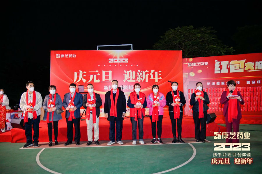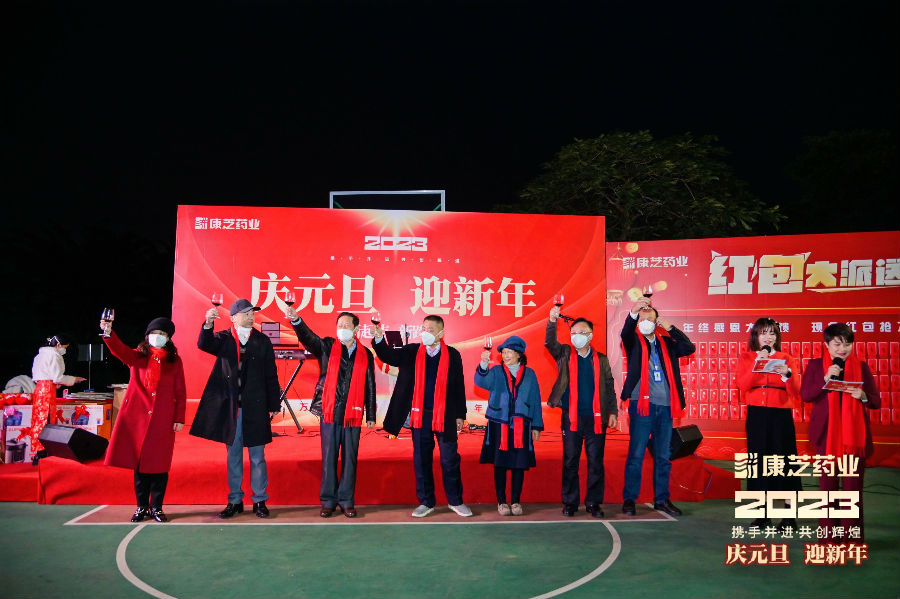 洪江游董事长代表365上市公司官网向全体365上市公司官网人送去了新年祝福,同时表示自疫情开放之后,各类防疫药品的社会需求量激增,相关药物的储备紧张,365上市公司官网受到海南省政府领导及海口市政府领导高度关注并亲临365上市公司官网园区调研指导。作为上市药企,365上市公司官网将责无旁贷地担起企业社会责任,保质保量地安全生产防疫物资及药品。这个任务光荣、艰巨且伟大!随后,董事长洪江游带着领导班子上台祝酒,由衷地感谢为了满足防疫药品生产需求,心甘情愿留守园区,加入全闭环生产环境,开足马力、加班加点、全力保障防疫物资稳定供应的365上市公司官网员工们,相信在大家的共同努力下,2023 年365上市公司官网将会再攀高峰,迎来更好的发展,未来会更加精彩且辉煌!