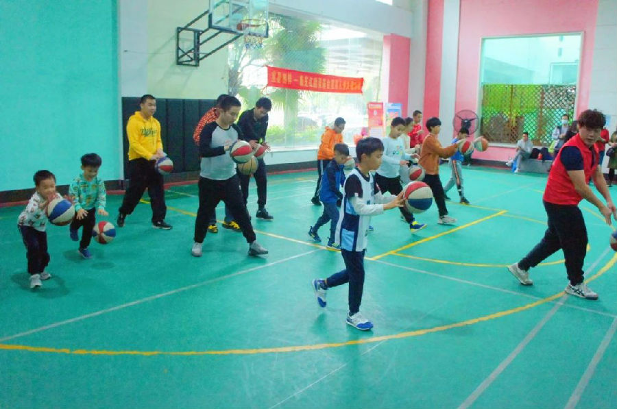 讲解完毕,孩子们就已经开始跃跃欲试。活动伊始,孩子们尝试着于他们而言新颖的篮球游戏。因为从未接触过篮球,他们尚未完全掌握游戏的要领,动作也比较生疏,但是在一众家长和志愿者的鼓励与帮助下,孩子们大汗淋漓地游玩着,用心地对待每一个游戏环节,欢笑不断,嬉笑玩闹着,现场洋溢着幸福满足的气息。球场上孩子们跑动的身影、童真的笑容,仿佛黑夜中星星般的光芒,让我们忍不住拍下照片,留住这一刻难得的美好。