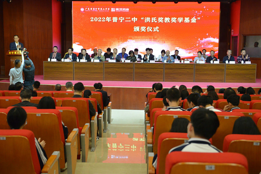 参加颁奖活动的领导和嘉宾为普宁市第二中学2021—2022学年度在各级各类竞赛中获得佳绩以及在2022年高考、中考中取得优异成绩的老师和学生颁奖。