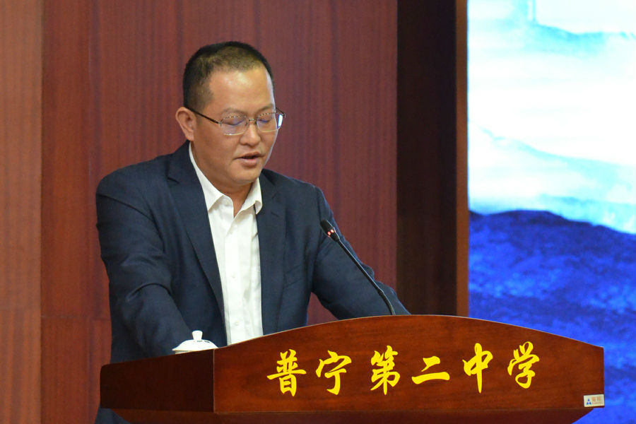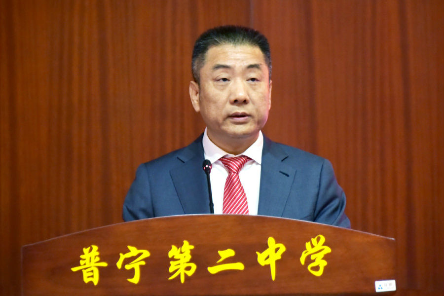 巫树林在会上讲话,他说,近年来,普宁市深入贯彻落实习近平总书记关于教育的重要论述和重要指示精神,把教育放在优先发展的战略位置,教育事业取得长足发展,形成了“党政重教、社会助教、教师乐教、全民兴教”的良好局面,这离不开广大教育工作者的共同努力,也离不开一直关心家乡教育事业发展的爱心企业家洪江游先生等社会各界的支持。他希望市教育部门贯彻落实好教育高质量发展三年行动计划,努力办好人民满意的教育。普宁市第二中学要坚决落实市委黄锐亮书记提出的“树立榜样和标兵,起示范带动作用”指示精神,把学校办成高质量、现代化名校,广大教育工作者要做到安教、乐教、勤教、善教,为普宁教育事业的高质量发展奉献自己的力量。希望同学们以梦为马,不负韶华,在求知、求真、求新的道路上努力拼搏、踔厉奋发,常怀感恩之心,他日回报家乡。同时,希望广大乡贤、校友和社会各界热心人士一如既往地关心、支持普宁的教育事业,踊跃参与捐资助教活动,为造福桑梓、为普宁教育高质量发展做出新的更大的贡献!