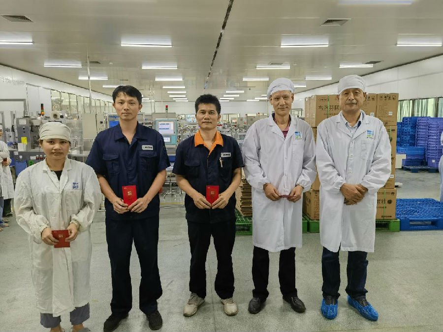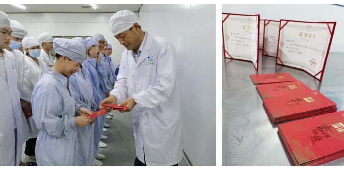 2023年4月3日下午,365上市公司官网海南生产基地举行生产效率表彰活动。海南生产基地总经理高洪常为保供生产期间在生产线推进过程中做出突出贡献的优秀团队、优秀个人等进行了颁奖。活动共颁发优秀团队1项,个人突出奖4名,优秀实习奖5名,对获奖人颁发荣誉证书及奖金,对生产部提出表扬。