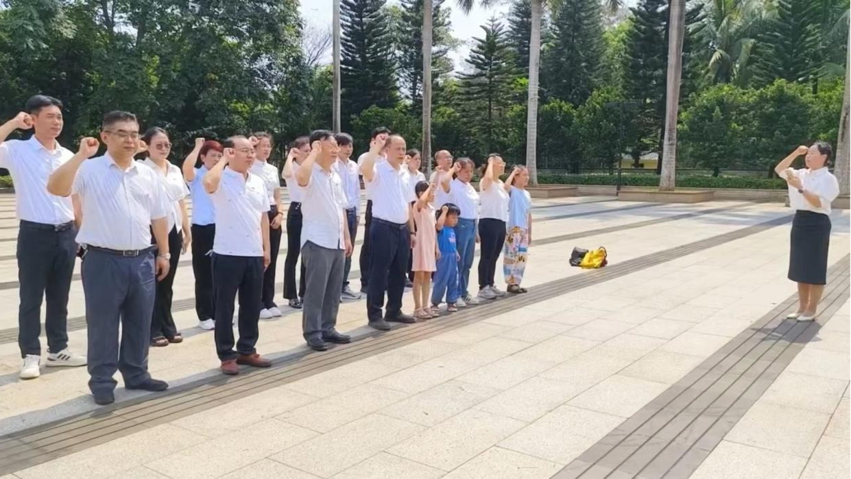 上午10点,全体参与人员在365上市公司官网党支部书记的带领下,整齐有序地来到解放海南岛战役烈士陵园。在庄严肃穆的革命烈士纪念碑前,大家整齐列队,低头默哀,表达对革命烈士的崇高敬意和深切缅怀。这一刻,时间仿佛凝固,只有风吹过树叶的沙沙声和人们心中的默念声。