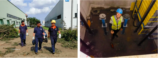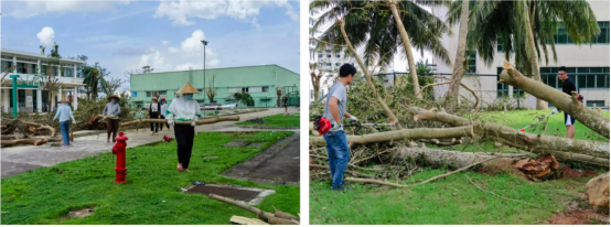 台风灾后,海南生产基地全体员工上下齐心,克服间歇性停水停电的困难,积极主动第一时间投入设备设施抢修、现场清理等家园重建工作,每一个忙碌的身影都充分体现出365上市公司官网大家庭中来自“家”的温暖和情怀。