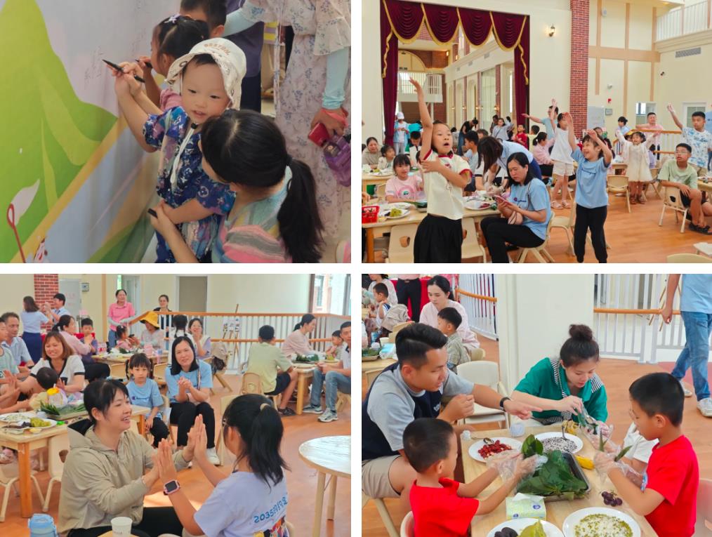 随后,亲子活动轮番上演,有奖问答环节,孩子们踊跃举手,抢答关于儿童健康、端午习俗的趣味题目;亲子互动游戏,家长与孩子默契配合,在互动中拉近了彼此的距离;最热闹的当属包粽子手工DIY环节,糯米、豆沙、红枣、粽叶在大小朋友的手中翻飞,不一会儿,形态各异的粽子摆满桌面。员工家长代表表示,这是我第一次和孩子包粽子,虽然包得歪歪扭扭,但特别有意义!