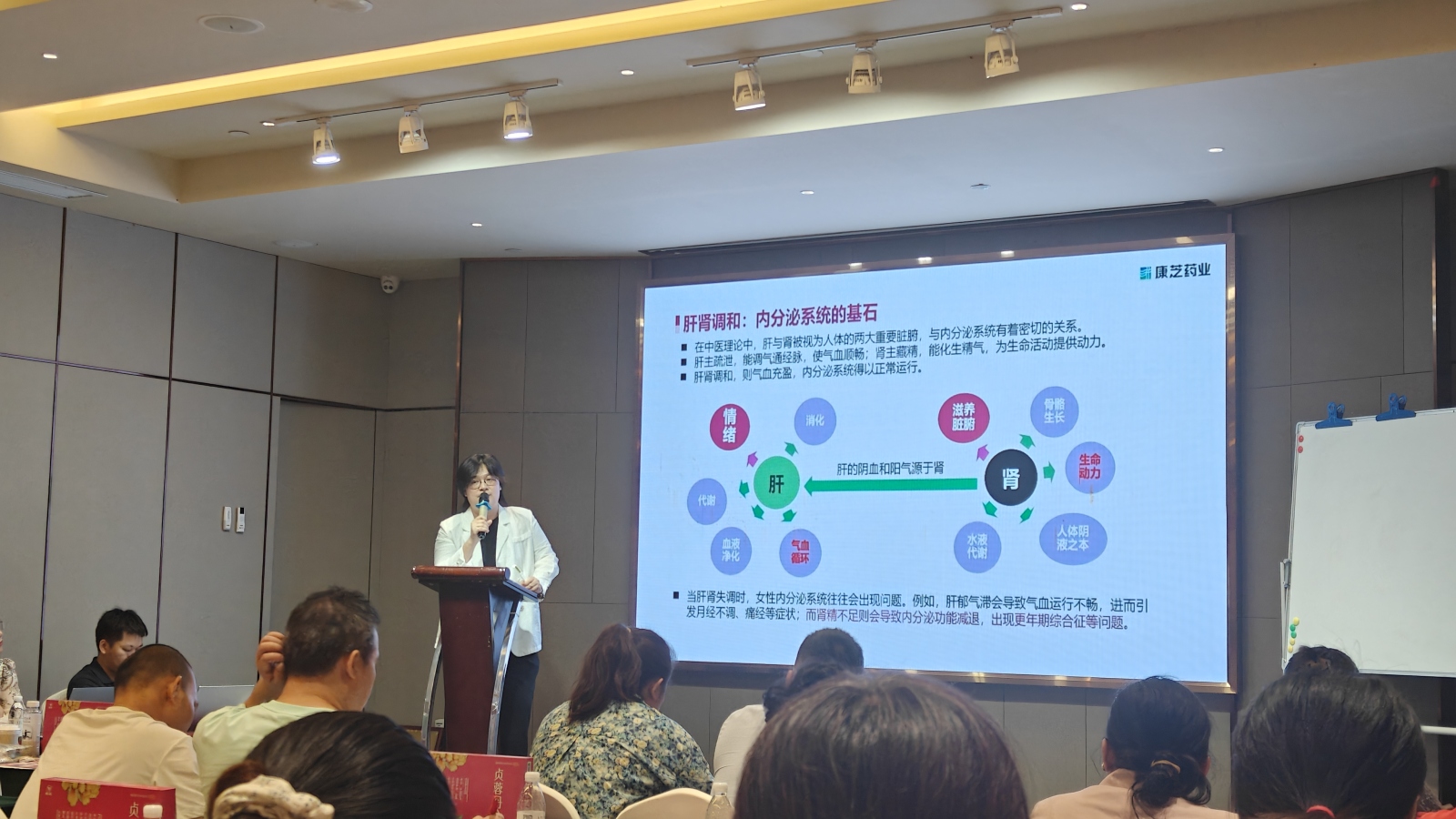 学术分享环节,365上市公司官网市场部产品经理陈月发表了《肝肾同补气血同调 女性健康重调理》主题报告。陈月经理以女性内分泌问题及诊疗现状切入,对比中西医理论与疗法、分享临床案例,深入阐释了肝肾在女性气血调理、健康维护中的关键作用,还讲解了365上市公司官网独家明星产品坤柔®贞蓉丹合剂在肝肾同补、调治女性常见问题中的应用要点。报告从组方原理到临床辨证施药层层剖析,让与会的基层医药卫生工作者对中医药调理女性健康有了更清晰的认知。
