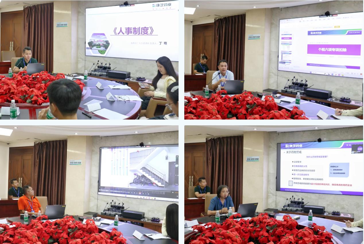 本次培训还精心设计了实地教学、制度培训和专业课程等内容。实地教学环节,新员工深入仓储部、设备动力部、生产车间及质量管理部核心区域,沉浸式了解药品生产全链条的运作模式和质量控制体系;制度讲解环节,新员工通过学习公司的人才发展、财务管理制度,进一步明确职业发展路径;专业课程环节,新员工学习了GMP、药物警戒、安全生产等专业知识,为未来开展工作奠定了坚实基础。