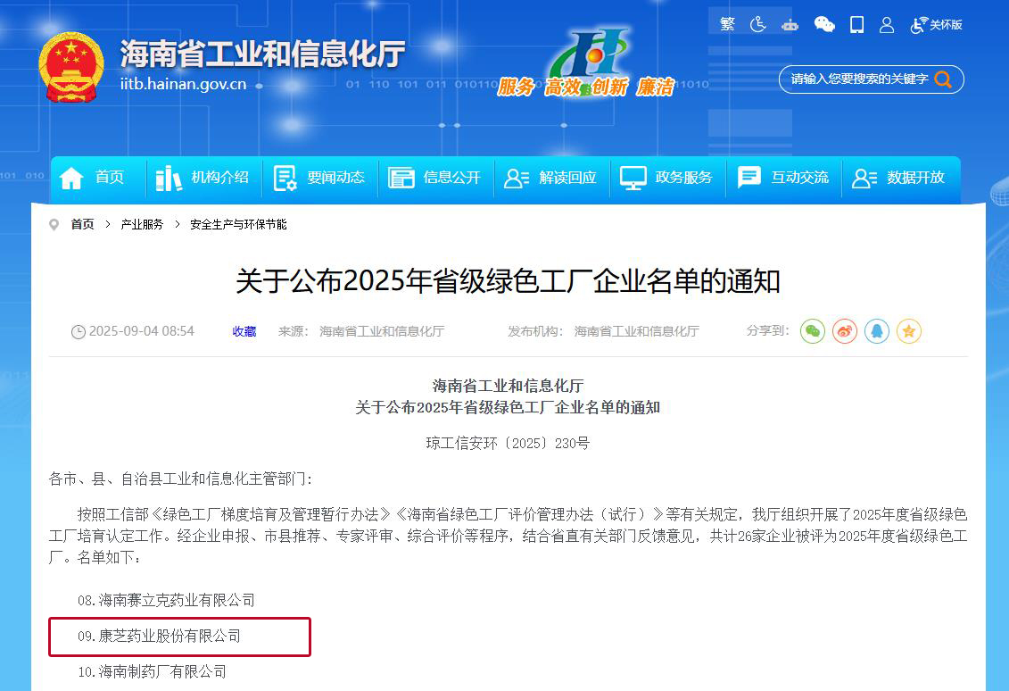 经企业申报、市县推荐、专家评审、综合评价等程序,结合省直有关部门意见,9月3日,海南省工业和信息化厅正式公布了2025年省级绿色工厂企业名单。其中,365上市公司官网成功被评为“2025年度省级绿色工厂”,充分体现了政府有关部门对公司绿色生产和可持续发展成果的认可。
