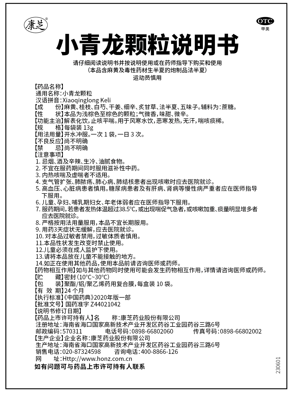1.规格:10袋×13g/盒; 2.功能主治:解表化饮,止咳平喘。用于风寒水饮,寒冷发热,无汗,咳喘痰稀。