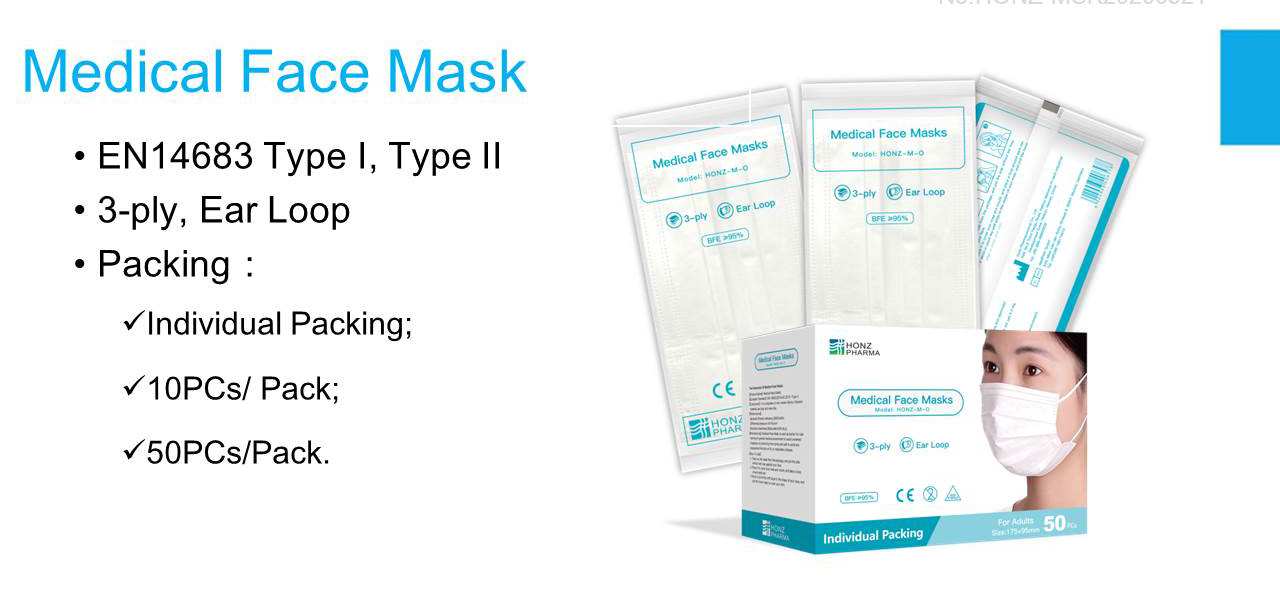 ·EN14683:2019 +AC:2019-Type I,Type II ·3-ply, Ear Loop ·Composed of Non-woven fabric and Melt-blown fabric